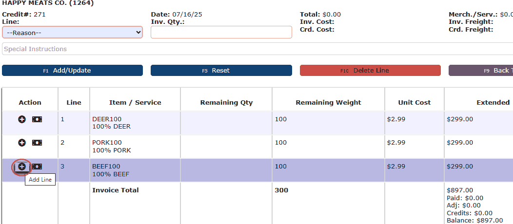 8. Click the Post/Credit Cash Button.