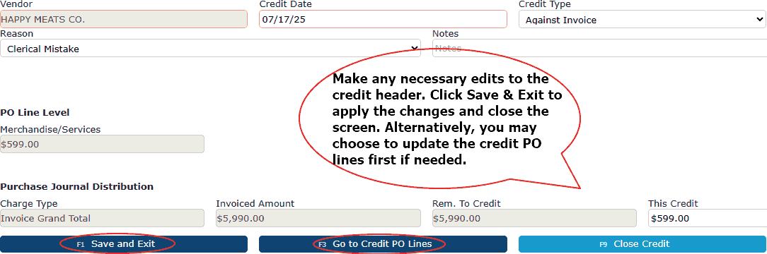 5. Click the Post/Credit Cash button to post the reversal and cancel the NACHA transmission that was previously pending approval.