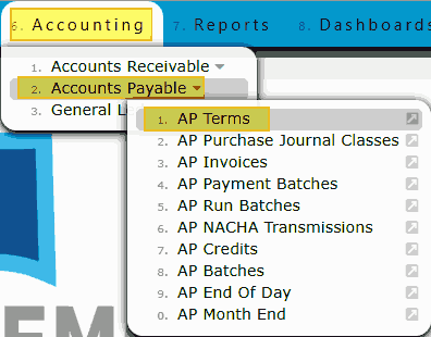 • Define and maintain Accounts Payable terms and classes for vendor payment and posting structure consistency.